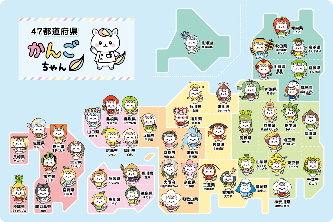 ※「各都道府県ページ」は、以下の各都道府県のかんごちゃんをクリックすると、ご覧いただけます。