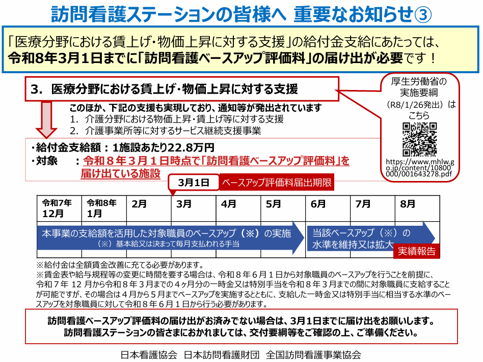 - 対象:令和8年3月1日時点で「訪問看護ベースアップ評価料」を届け出ている施設